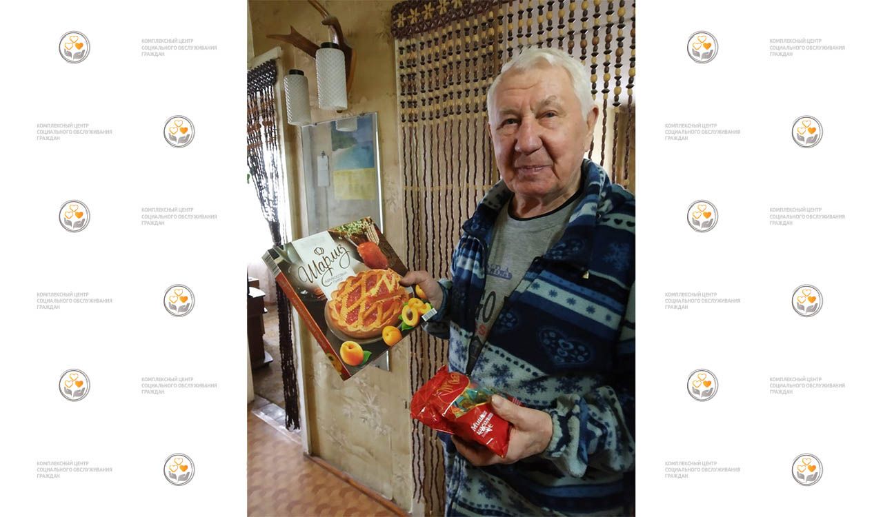 На фото: социальный работник Центра Катасонова Надежда Алексеевна поздравляет своих получателей социальных услуг Пономарева Петра Ивановича и Мишина Владимира Сергеевича с Днем защитника Отечества.