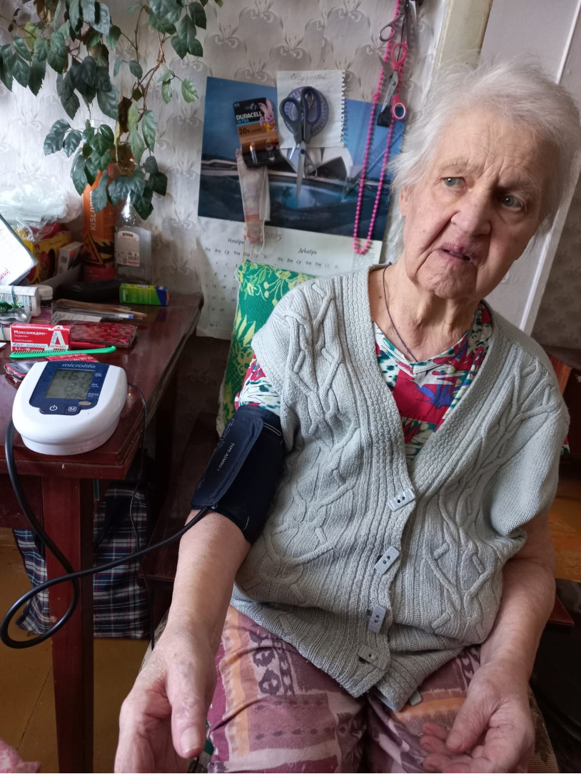 Вот и социальный работник Центра Харисова Флюра Мансуровна после вызова врача к получательнице социальных услуг Нечаевой Лидии Андреевне, проживающей в отдаленной сельской местности, держит на контроле самочувствие своей подопечной. Флюра Мансуровна внимательно следит за показателями артериального давления, а также за приемом всех необходимых лекарств. Социальный работник не только проверит, чтобы все назначенные препараты были в наличии, но и всегда поинтересуется самочувствием, при необходимости запишет в медицинское учреждение и сопроводит на приём к специалисту. Забота о здоровье наших получателей социальных услуг – один из главных приоритетов в работе сотрудников Центра.
