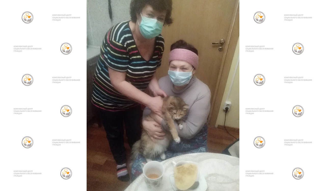 На фото: получательница социальных услуг нашего Центра Харитонова Татьяна Алексеевна, социальный работник Центра Балашова Лилия Викторовна и любимая питомица – кошка Мила.