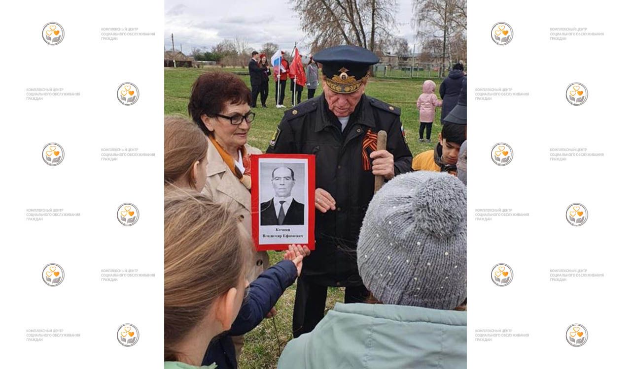 На фото: социальный работник Центра Обушеева Мария Алексеевна с другими участниками торжественного митинга, посвященного Дню Победы.