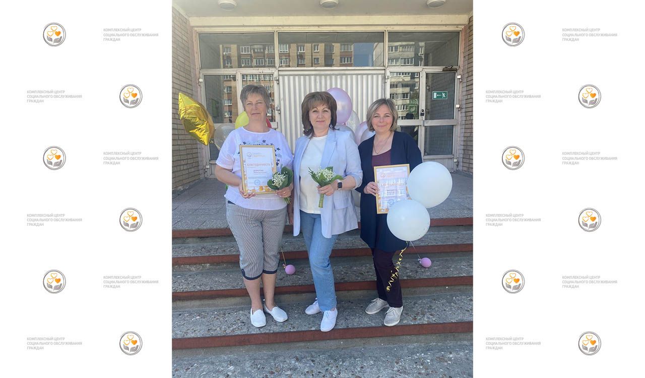 На фото: сотрудники Центра с Благодарственными письмами, которыми они были награждены в честь Дня социального работника.
