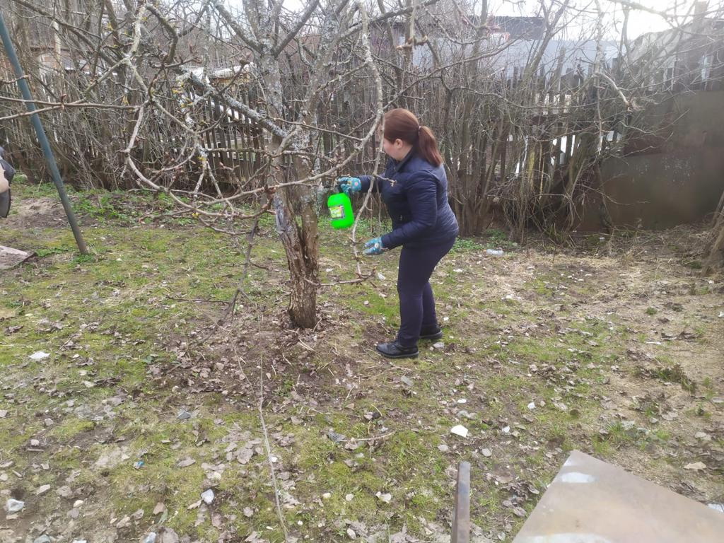 На фото: социальный работник Центра Агентова Екатерина Александровна помогает своим получателям социальных услуг ухаживать за приусадебными участками.