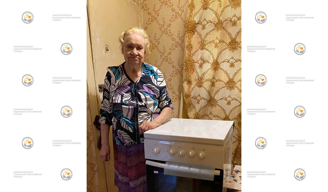 На фото: получательница социальных услуг Центра Банюнис Нина Ивановна и ее новая газовая плита.