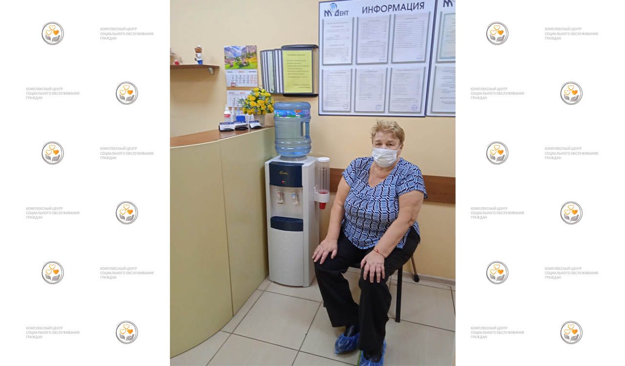 На фото: получательница социальных услуг Центра Смирнова Евгения Сергеевна получает помощь врача-стоматолога.