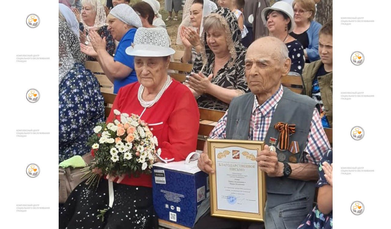 На фото: получатели социальных услуг нашего Центра супруги Шаверы Мария Михайловна и Шавер Борис Залманович с почетным благодарственным письмом в честь 60-летия их совместной жизни.