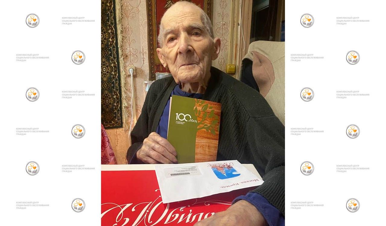 На фото: получатель социальных услуг Центра Виктор Стефанович Волчков принимает поздравления с яркой датой – 100-летним юбилеем.