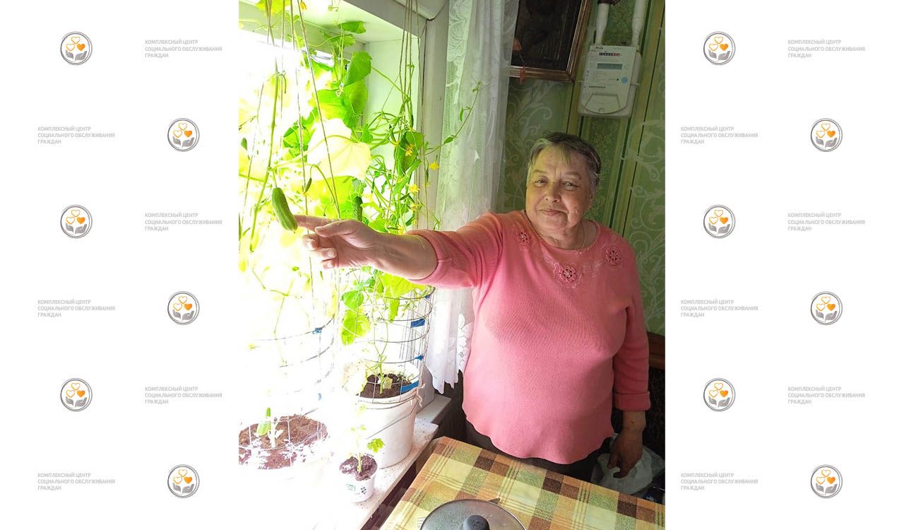 Наша подопечная Нина Александровна Чикалова не может нарадоваться богатому урожаю. Хрустящие ароматные огурчики она срывает прямо с веток к столу. Что может быть приятнее, чем наслаждаться полезными овощами, выращенными собственными руками. По состоянию здоровья Нина Александровна не может иметь огород и теплицу, но она научилась выращивать огурцы в домашних условиях и даже не на балконе, а на подоконнике. Она долго изучала разные способы выращивания, читала литературу про правильную посадку и уход. Весной высадила семена в большие емкости и сделала для огурцов опору. Уход за зелеными насаждениями доставляет ей удовольствие и растения отвечают дружным ростом и хорошим урожаем.
