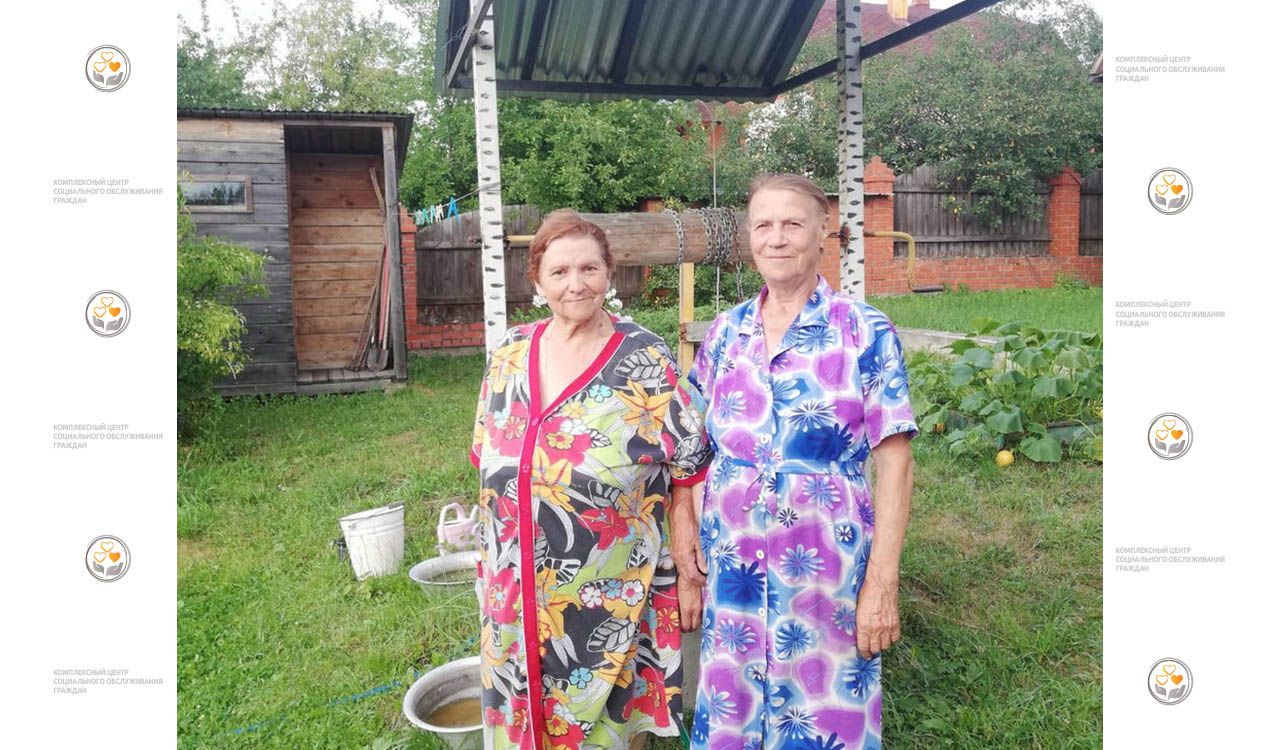 На фото: социальный работник Мартынова Н.Н., а также получательницы социальных услуг Леонова О.Г и Иванова А.Ф.