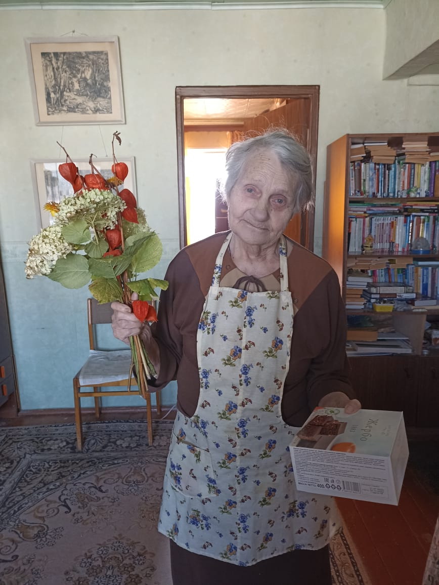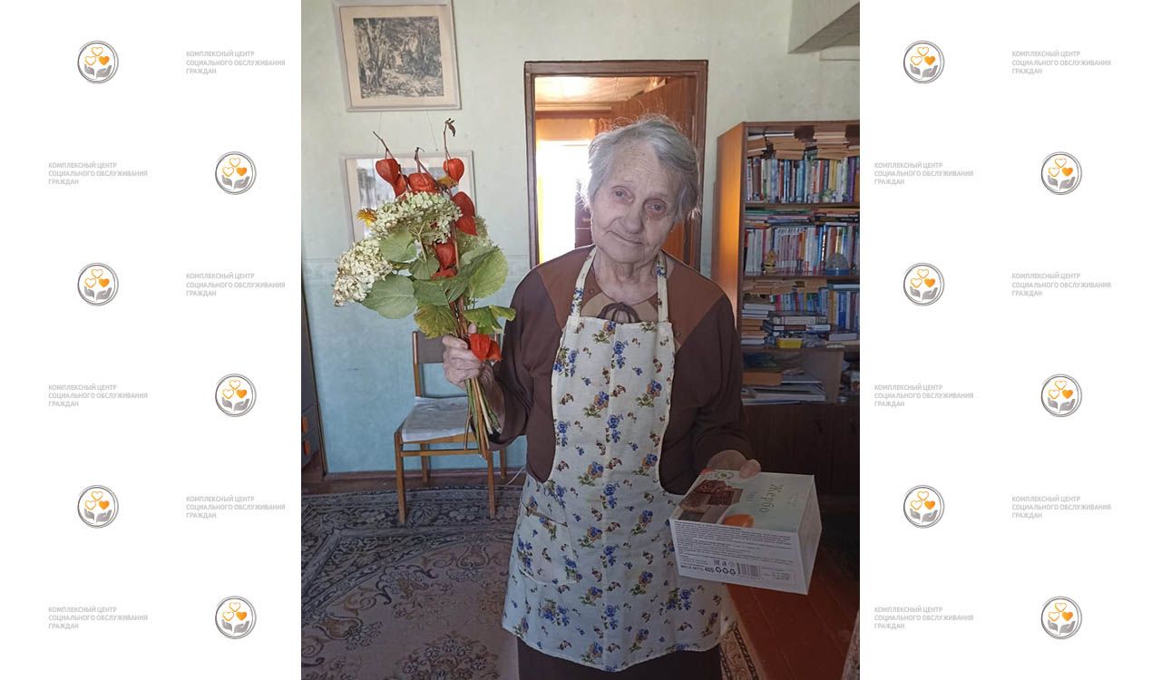 С праздником Валентину Григорьевну пришла поздравить социальный работник Центра Молчанова Оксана Сергеевна. Она принесла сладкий подарок к столу и букет сухоцветов, которые очень любит Валентина Григорьевна, говорит, что они не требуют ухода, могут долго радовать глаз и поднимать настроение.