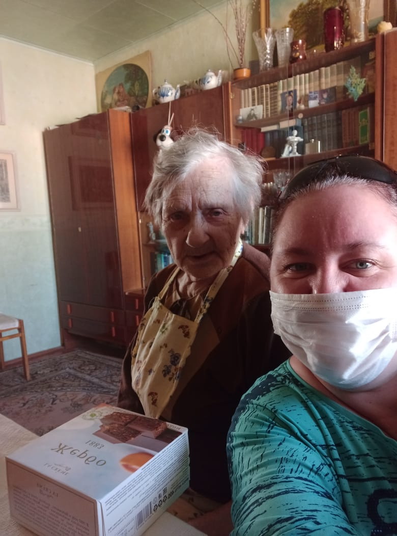 На фото: получательница социальных услуг Центра Кузнецова Валентина Григорьевна и социальный работник Центра Молчанова Оксана Сергеевна во время организации праздничного торжества.