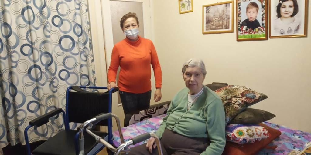 На фото: социальный работник Лобова Галина Васильевна и получательница социальных услуг Горкуша Ирина Евгеньевна.
