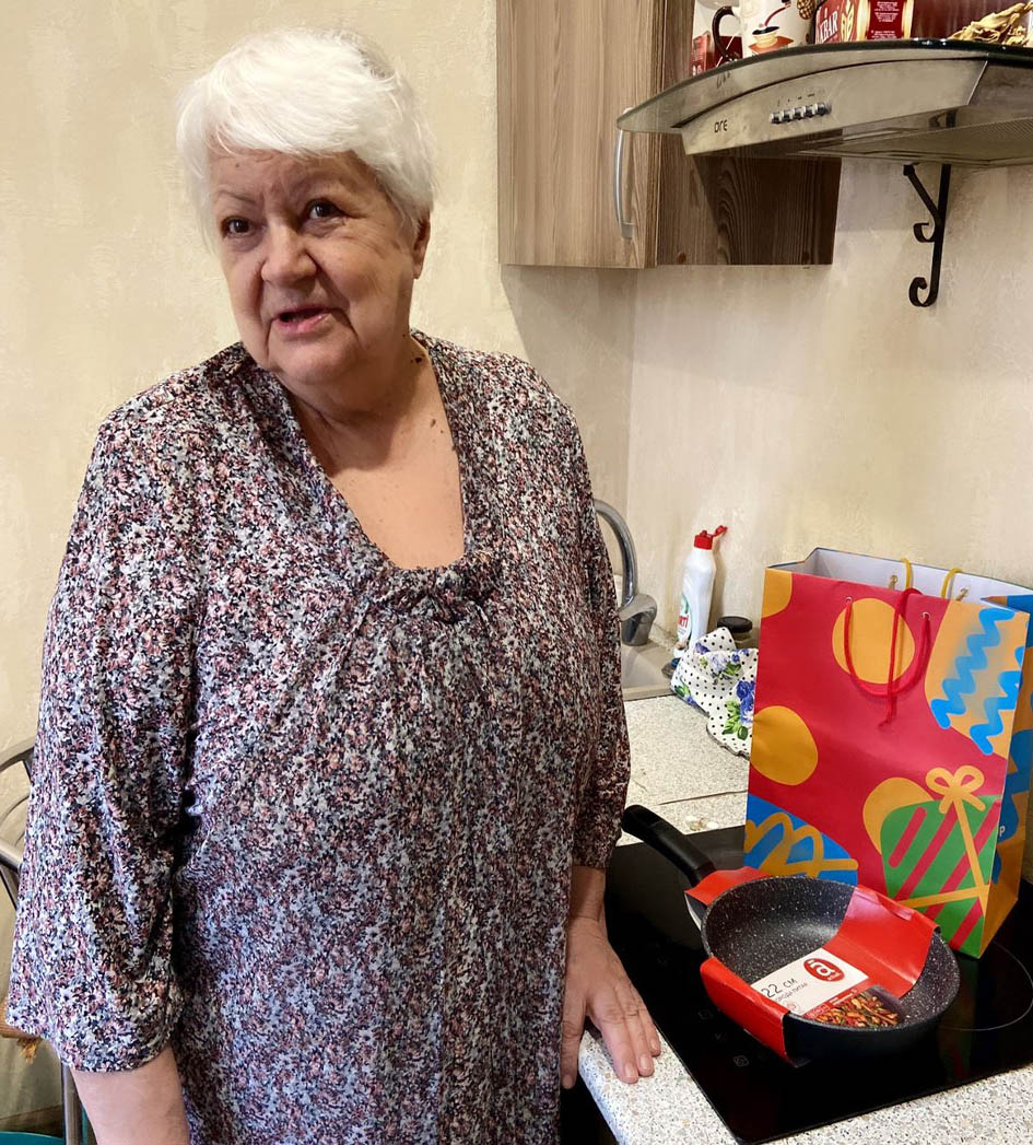 Вот и получательница социальных услуг нашего Центра Фурсова Нина Константиновна была очень рада подарку, который ее социальный работник Шостак Елена Вячеславовна вручила ей на День рождения. Нина Константиновна очень любит готовить и давно мечтала об удобной антипригарной сковороде. Наша подопечная живёт и обслуживается в Звенигороде, свой 78-ой день рождения отметила тихо и по-домашнему. Ее поздравили самые близкие и родные и в их числе, конечно ее бессменная помощница, социальный работник Елена Вячеславовна, которая была рада в этот день доставить вместе с желанным подарком отличное настроение и массу позитивных эмоций. Теперь Нина Константиновна изучает новые рецепты и говорит, что с такой сковородкой точно сможет создавать настоящие кулинарные шедевры. Пожелаем ей успехов!