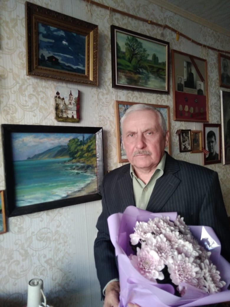 Выставка стала прекрасным подарком к юбилею нашего получателя социальных услуг: Николай Валентинович свое 70-летие отпраздновал в октябре. Также к юбилею Николая Валентиновича Богомья в электростальской газете «Молва» вышла статья, рассказывающая о творческом пути художника. С творчеством связана большая часть его жизни: окончил художественно-промышленный институт им. Строганова, работал дизайнером в бюро эстетики Электростальского завода тяжелого машиностроения, Московском НИИ вагоностроения, Министерстве путей сообщения. Участвовал в разработке дизайна интерьера поезда «Красная стрела». И где бы ни работал Николай Валентинович, всегда ощущал себя художником. Он вспоминает, что темой его дипломной работы в Строгановке стал интерьер подводной лодки, а на такую «морскую» направленность диплома оказал огромное влияние вышедший на экраны фильм «Человек-амфибия». Картину он посмотрел не один десяток раз. И под впечатлением от фильма впервые нарисовал море.