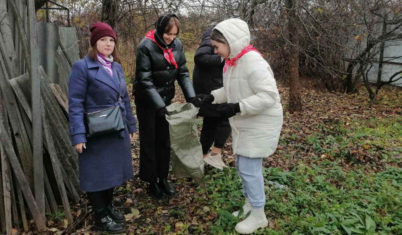 На фото: социальный работник Центра совместно с волонтерами проводят уборку приусадебного участка наших получателей социальных услуг Головлевой Зинаиды Александровны и Головлева Владимира Борисовича.