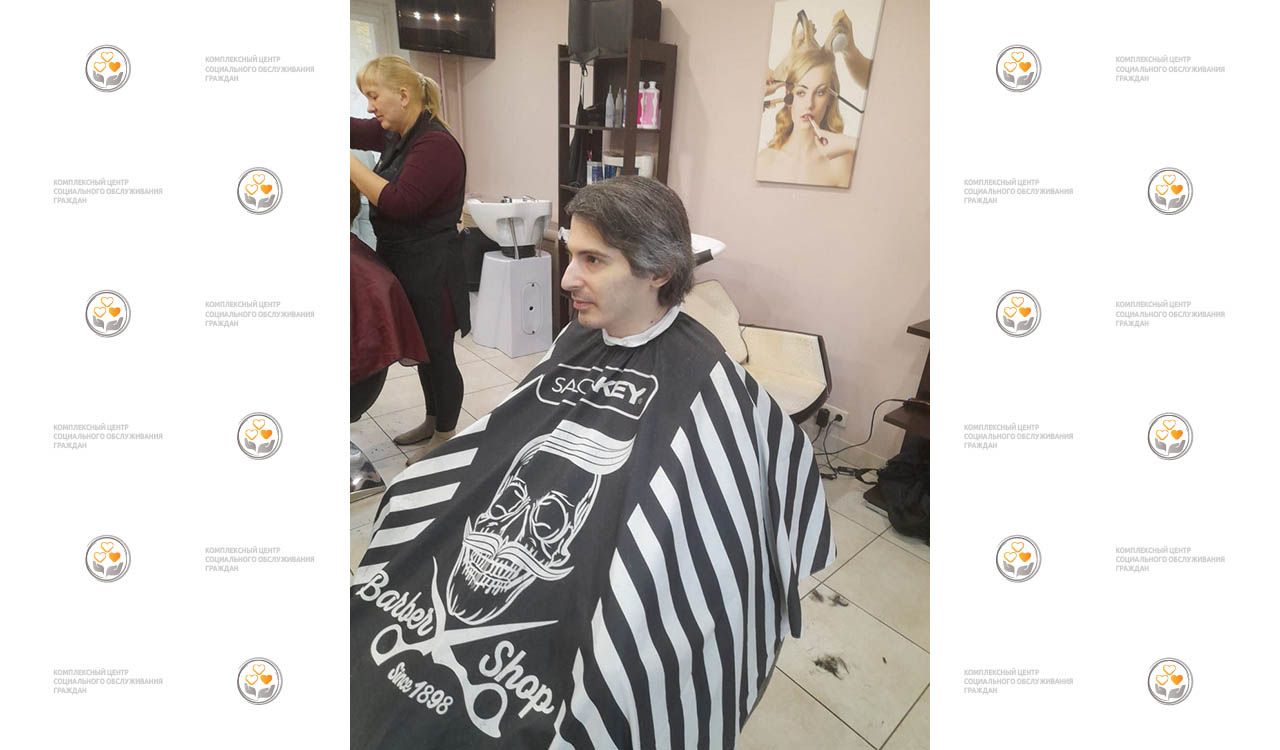На фото: получатель социальных услуг Центра Светличный Руслан Шодиевич в парикмахерской.