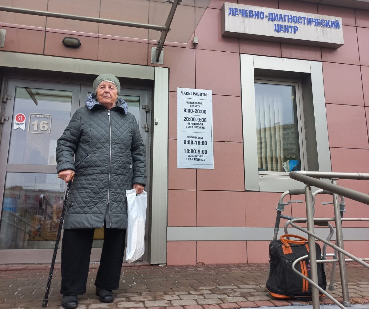 На фото: получательница социальных услуг Центра Нефедова Лидия Ивановна во время посещения клиники в Москве.