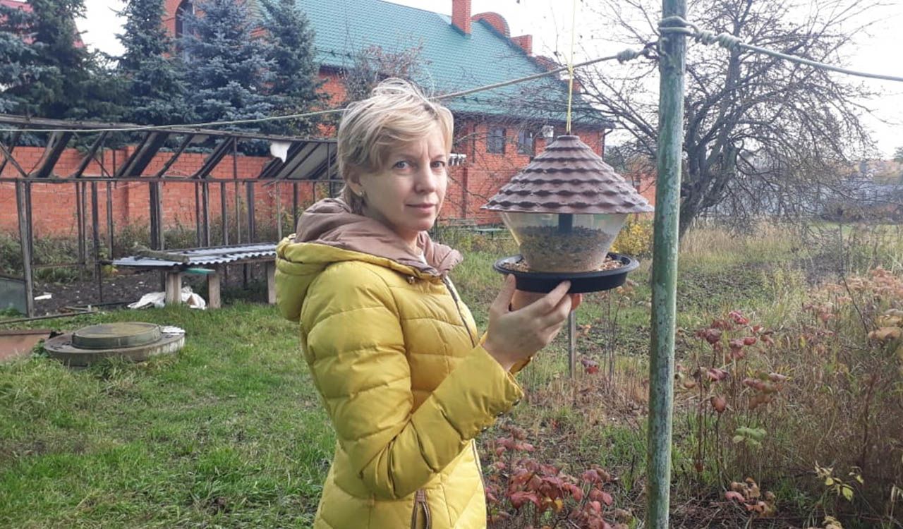 Социальный работник нашего Центра Смирнова Елена Викторовна спасает зимой птиц: они вместе с сыном повесили кормушку для пернатых и регулярно насыпают в неё корм.