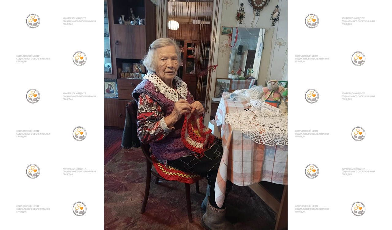 Вот и наша подопечная Химидинова Тамара Алексеевна в свои 93 года не может сидеть без дела. Труженик тыла, ветеран труда, очень добрый и позитивный человек – она своим примером доказывает, что возраст совсем не помеха для развития и творчества. Летом Тамара Алексеевна трудится в огороде, сажает зелень, выращивает цветы. Она считает, что все цветущее продлевает ей жизнь. «Они же живые и я всегда с ними разговариваю и понимаю, когда их полить или подкормить», - говорит она. Зимой наша получательница социальных услуг посвящает время не менее увлекательному занятию – вязанию крючком. Перед праздниками она старается связать как можно больше оригинальных и уютных вещиц: красивые ажурные салфетки и воротнички, сказочных животных так приятно будет подарить своим близким и знакомым к Новому году. Пожелаем Тамаре Алексеевне крепкого здоровья, дальнейшего активного долголетия и творческих успехов!