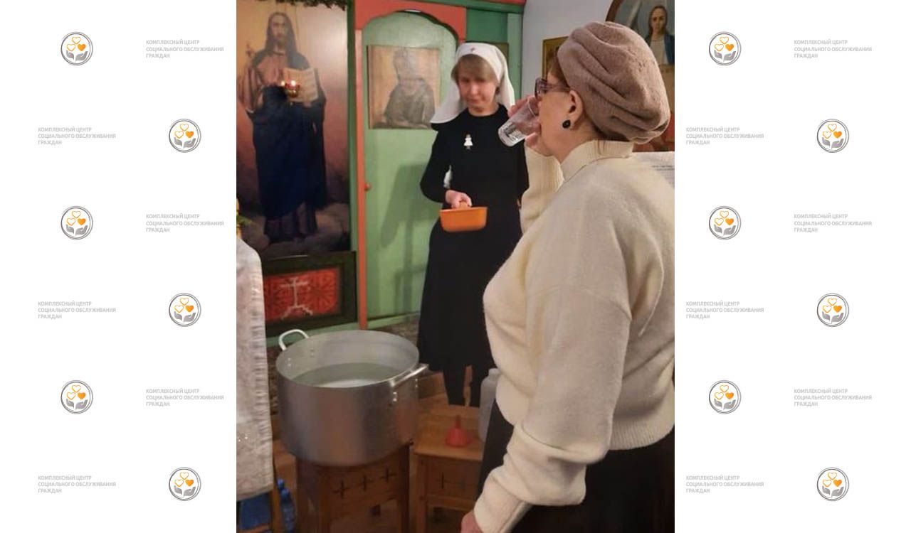 Православные верующие особо почитают этот праздник – светлый, духоподъемный, пробуждающий самые возвышенные чувства и эмоции. Накануне Крещения Господня в храмах проводится особая литургия. Верующие посещают утреннее и вечернее богослужение 18 января и праздничную литургию в сам праздник. И, конечно, одним из главных событий Крещения является освящение воды. Получатели социальных услуг Центра и социальные работники Центра, придерживаясь давних традиций, посетили праздничное богослужение, приобщились к великому празднику и набрали освященной воды.