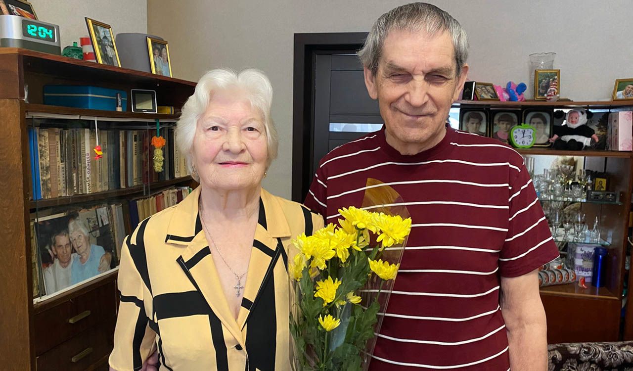 На фото: получатели социальных услуг Центра супруги Смирновы Павел Яковлевич и Юлия Федоровна принимают поздравления и подарки в честь Бриллиантовой свадьбы.