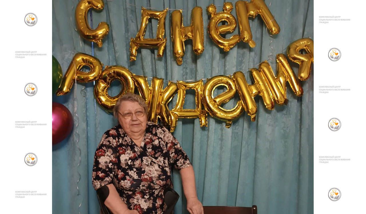 На фото: социальный работник Центра Нисина Елена Юрьевна организовала для своей получательницы социальных услуг Павловой Валентины Георгиевны яркий праздник.