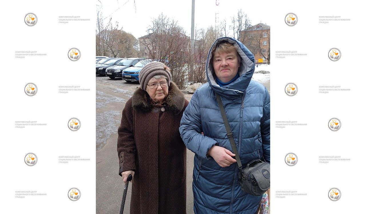 На фото: социальный работник Центра Бученкова Наталья Владимировна на прогулке со своей подопечной Корешковой Музой Николаевной.