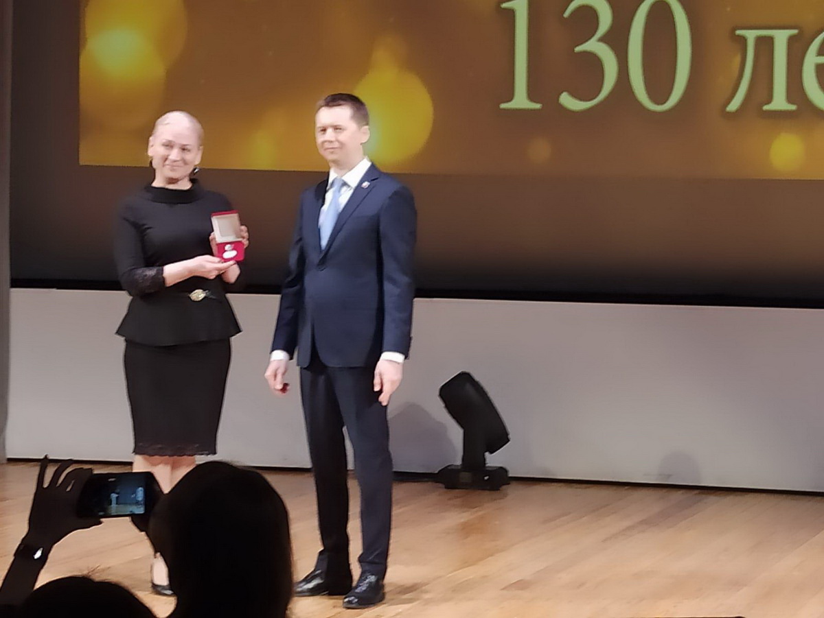 На фото: начальник одного из управлений Центра Корнеева Ольга Тихоновна с почетной наградой - медалью Марины Цветаевой.