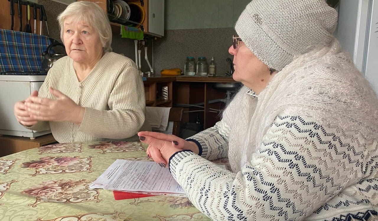 На фото: получательница социальных услуг Центра Сухова Юлия Васильевна делится воспоминаниями из своей юности с социальным работником Центра Клейменовой Алиной Александровной.